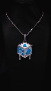 The medallion, decked out in VS and VVS diamonds, rocks a light blue design that matches Paul Masson ICE’s signature color, hanging from an icy white gold chain. It’s the type of piece that turns heads and starts conversations—the perfect flex for a true fan.