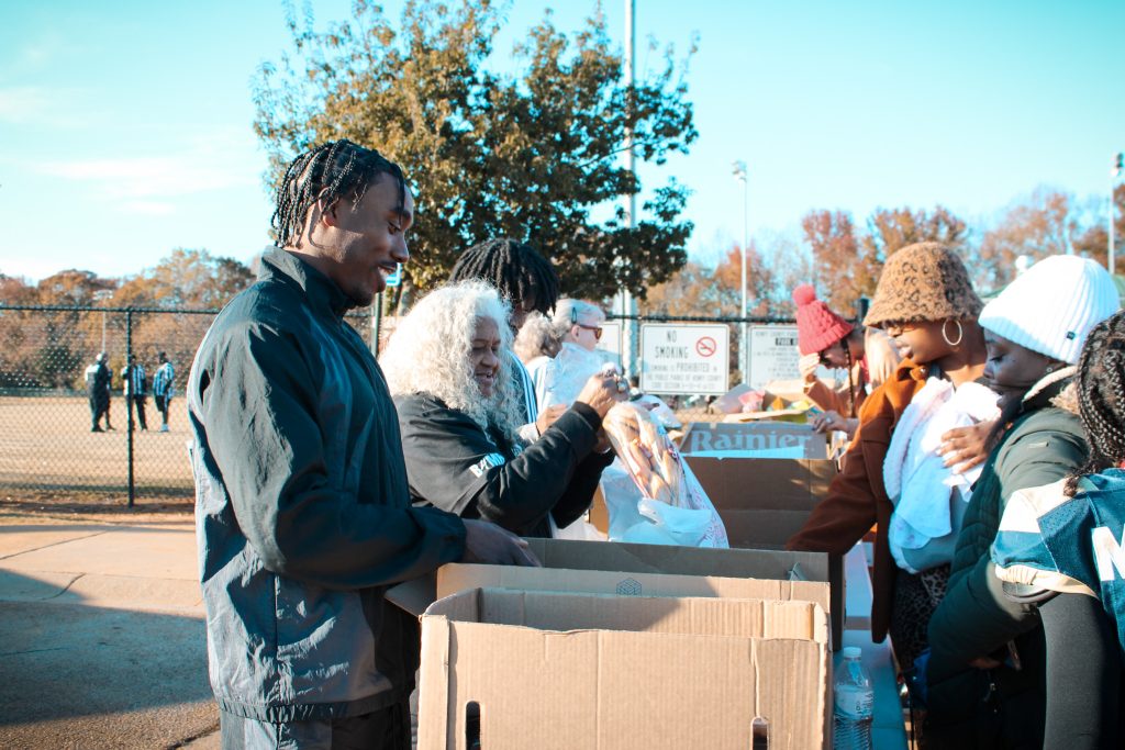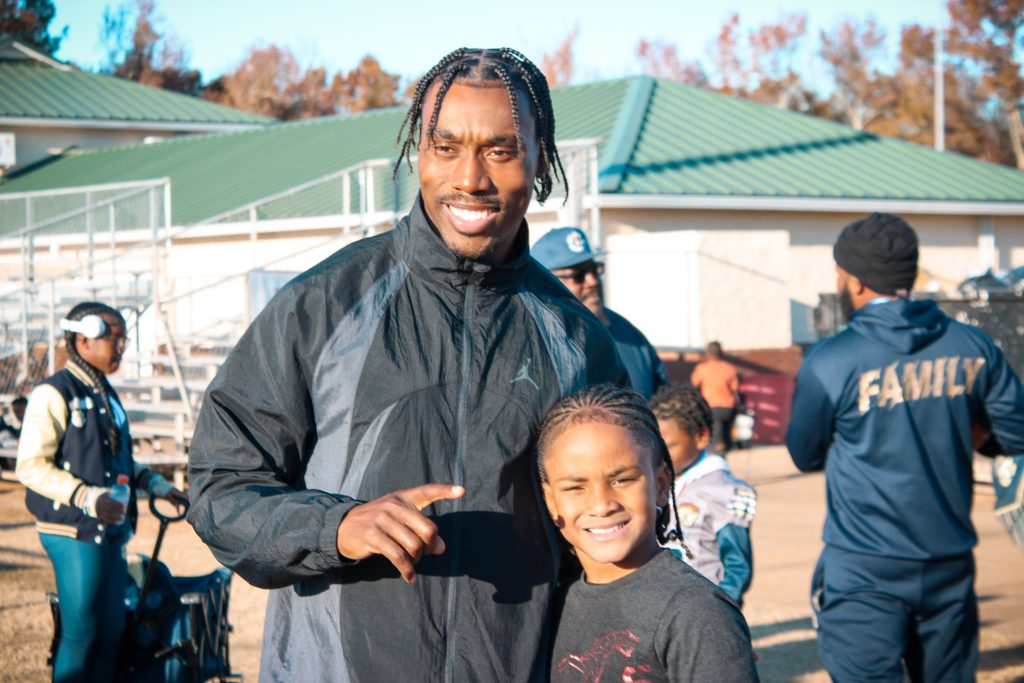 • Special Guest Appearance—Terry Allen: The former college athlete and actor from the Starz hit series BMF inspired the crowd with his message of resilience, service, and community leadership. Beyond his speech, Terry Allen spent the day engaging with attendees, playing football, distributing food, and connecting with kids and families.