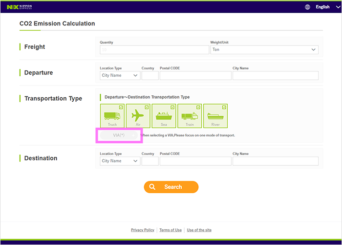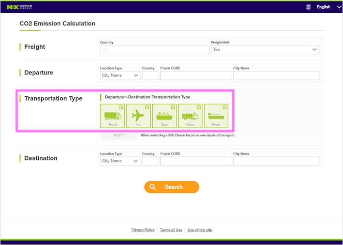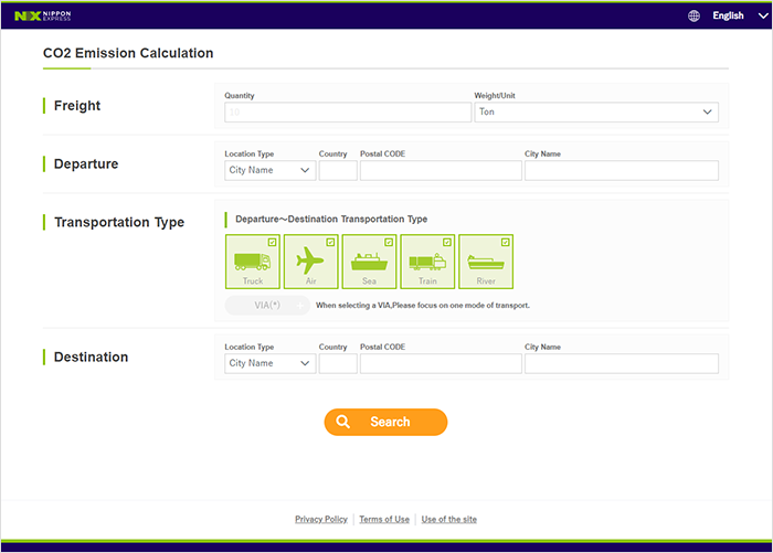 Nippon Express has provided a tool to help you calculate the emissions generated by your deliveries.