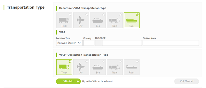 - 3) You can use the "VIA" button to specify stopovers in transit.